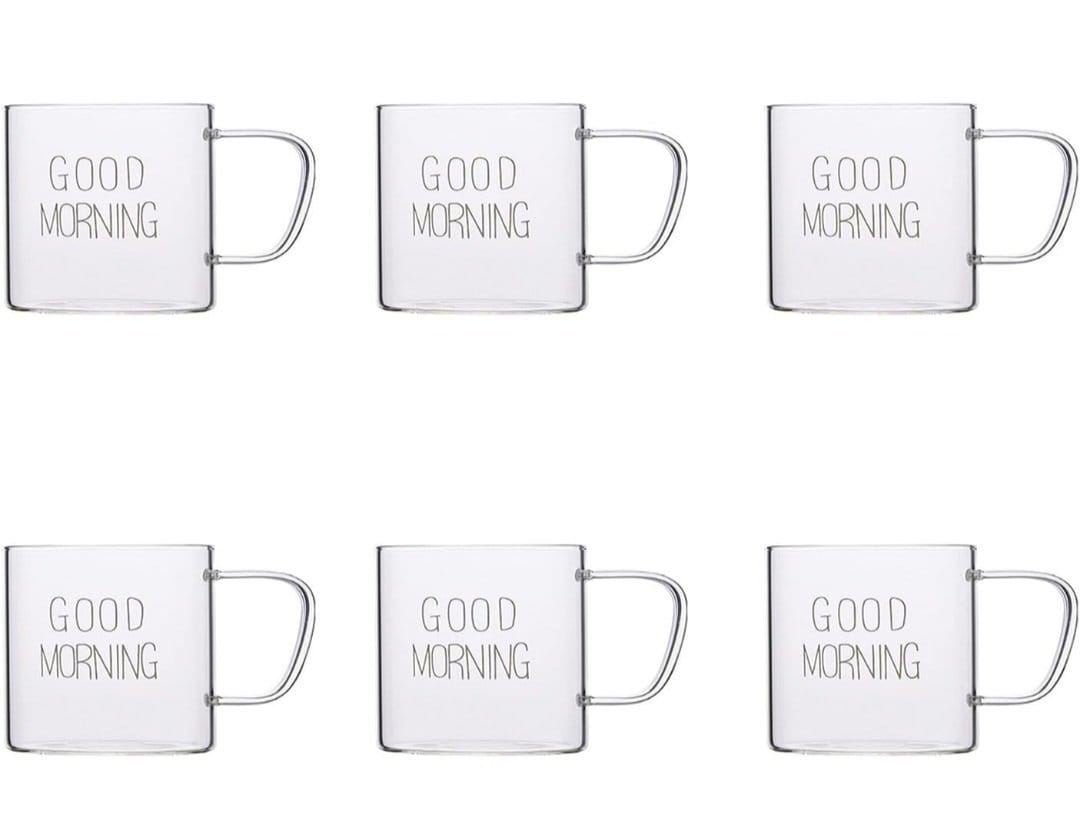 طقم مجات قهوة شيك جدا Good Morning مكون من 6 قطع ب يد